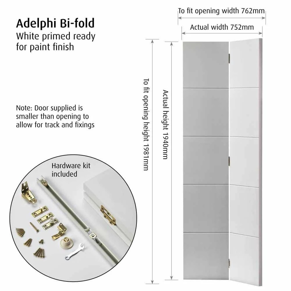 Please note that the door opening size is listed and that the actual bi-fold door supplied is slightly smaller to accommodate tracking.