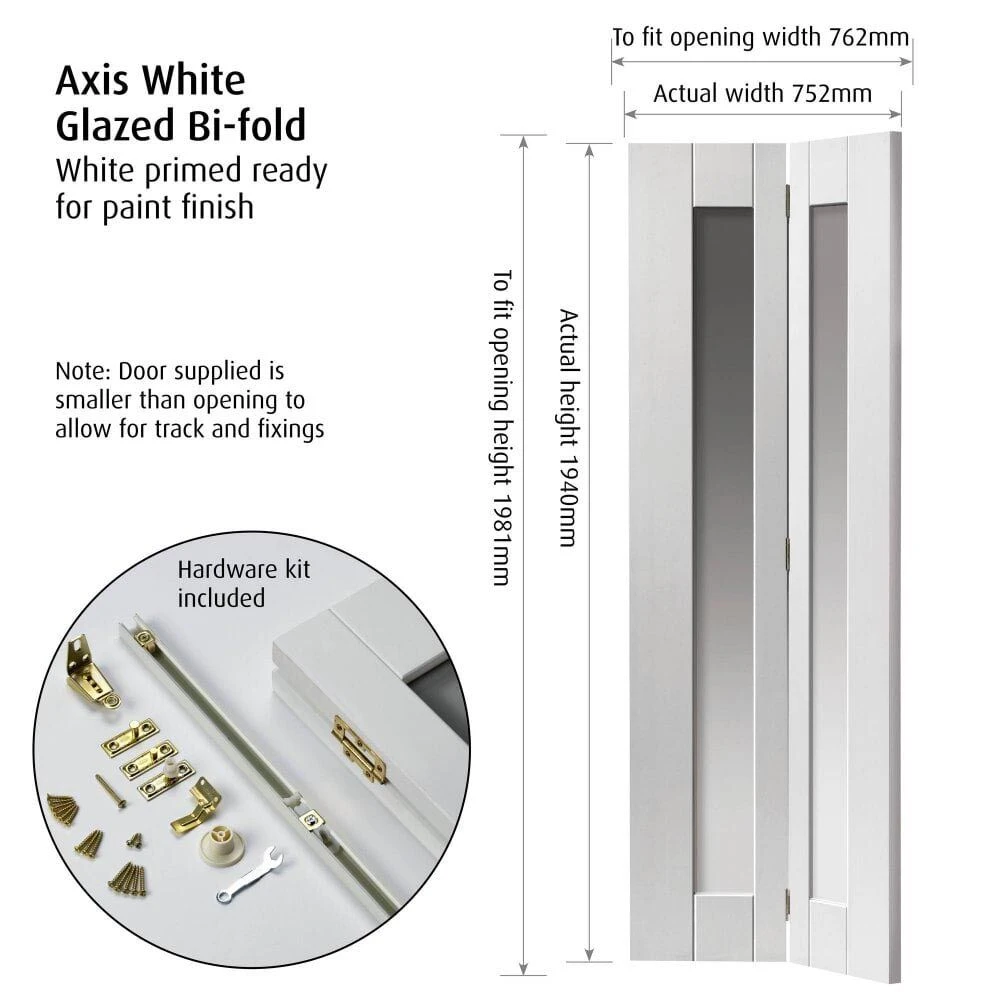 Please note that the door opening size is listed and that the actual bi-fold door supplied is slightly smaller to accommodate tracking.