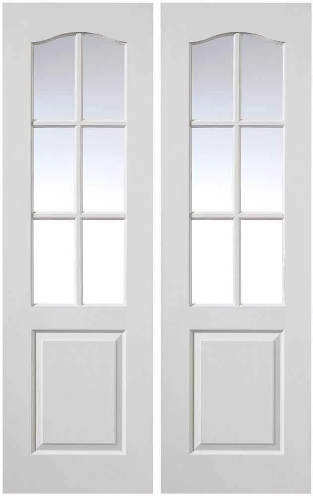 A moulded white woodgrained hard wearing door skin with 1 lower panel which is raised and fielded the Classique 6 pane 1 panel door pair is a lovely example of what can be achieved within a limited budget.