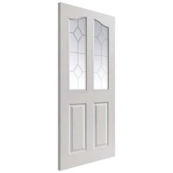 The Internal Edwardian Door comes from their White Classic collection and is primed with a double coat, ready for a final finish. This particular design features 2 panels, 2 glazed panes of 4mm single glazed etched clear glass and an approximate weight of 14-17kg.