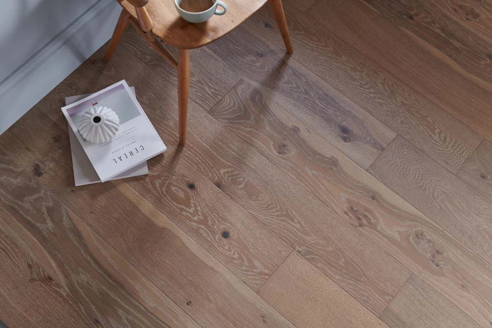 Imagine salt and sand, years of maritime history ingrained into the timbers of hardworking waterside structures, captured in this characterful brushed and matt lacquered board.