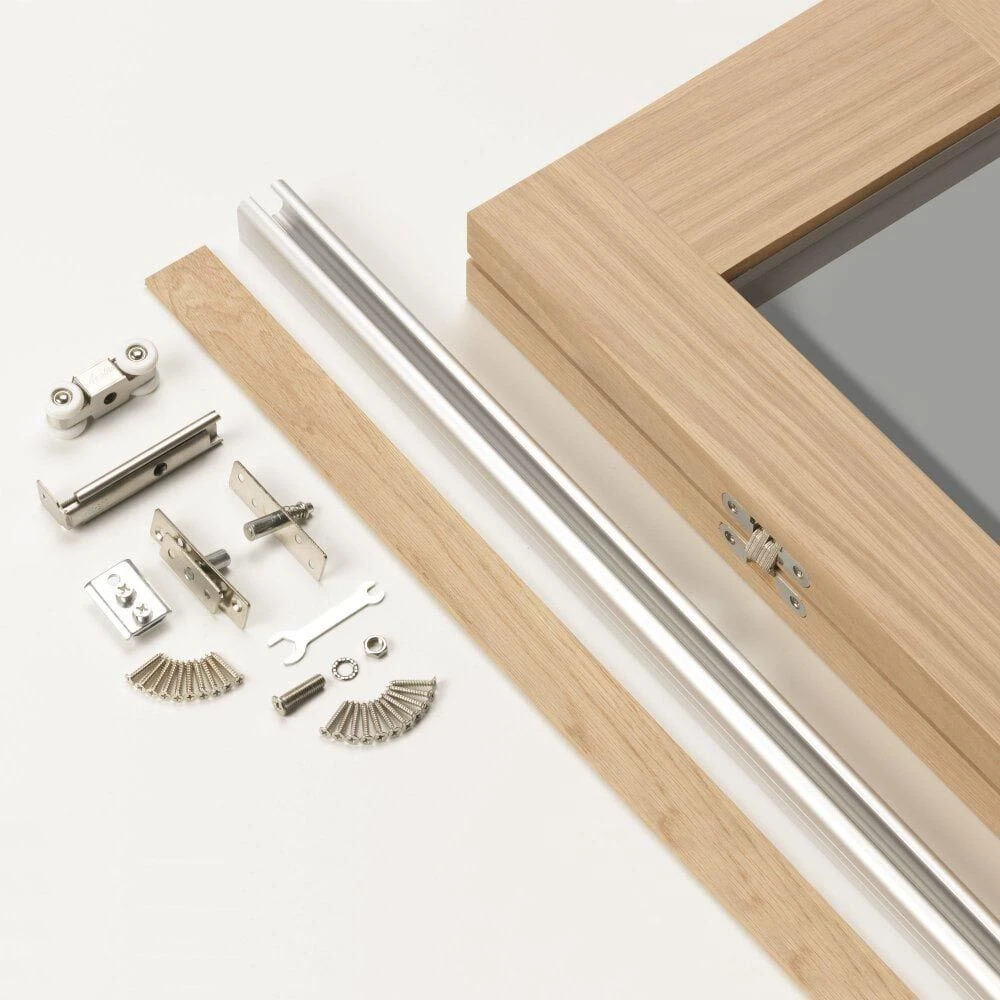 Easy to install into existing linings, supplied ready hinged with pivots, brackets and a sliding track.