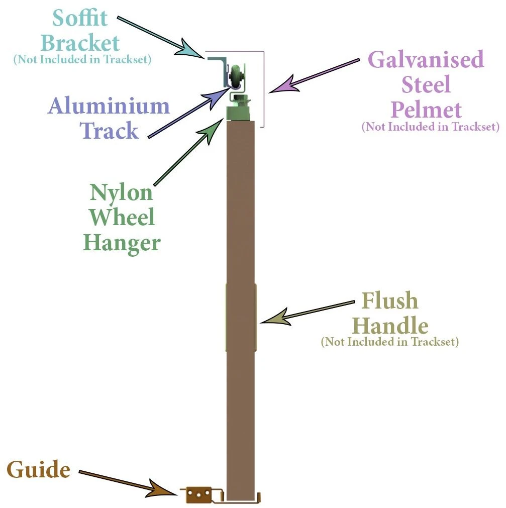 Anodised aluminium top track drilled and countersunk for side fixing, Soffit brackets available