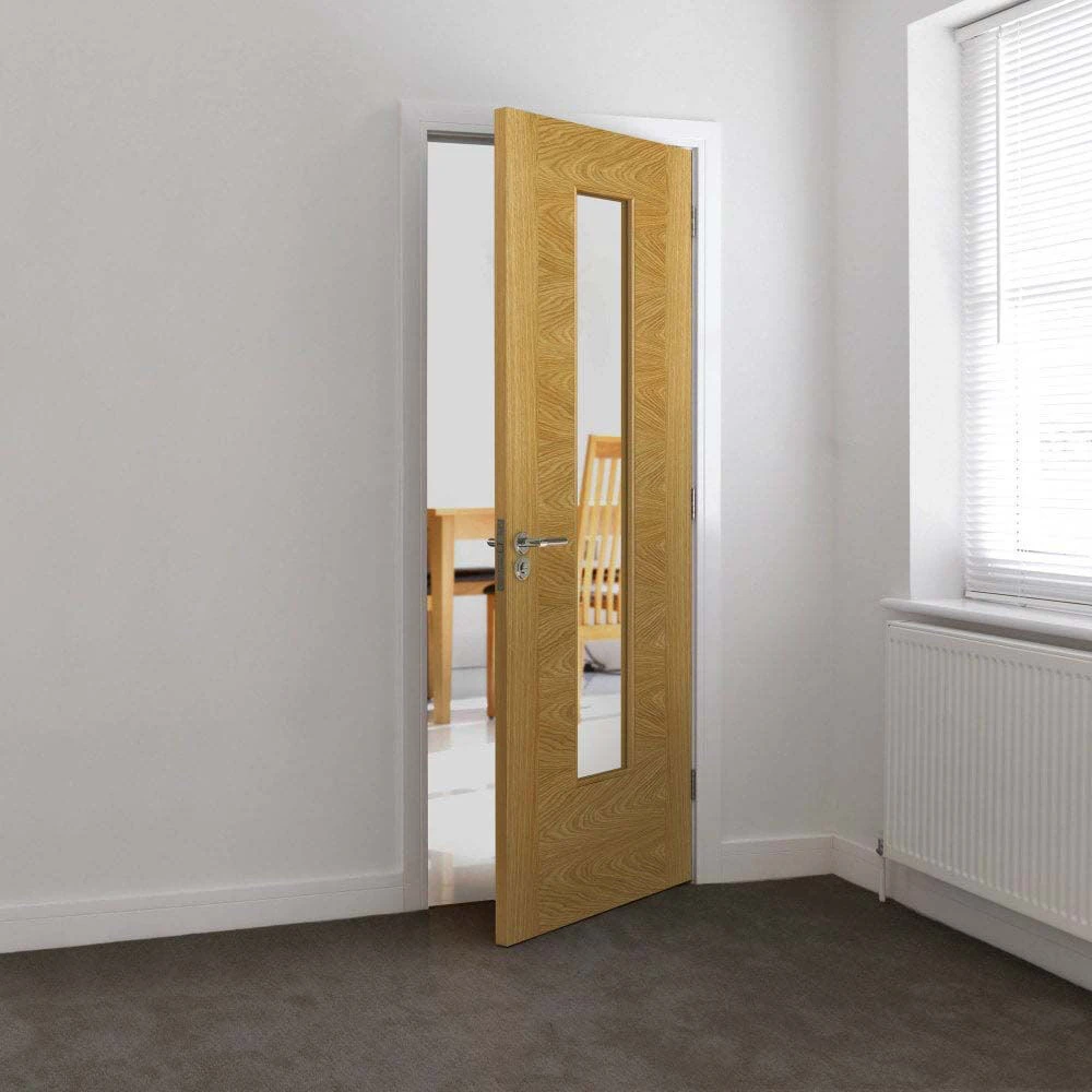 Our 1981 x 762 x 35mm Oak Ostria Glazed Door is fully finished so ready to hang