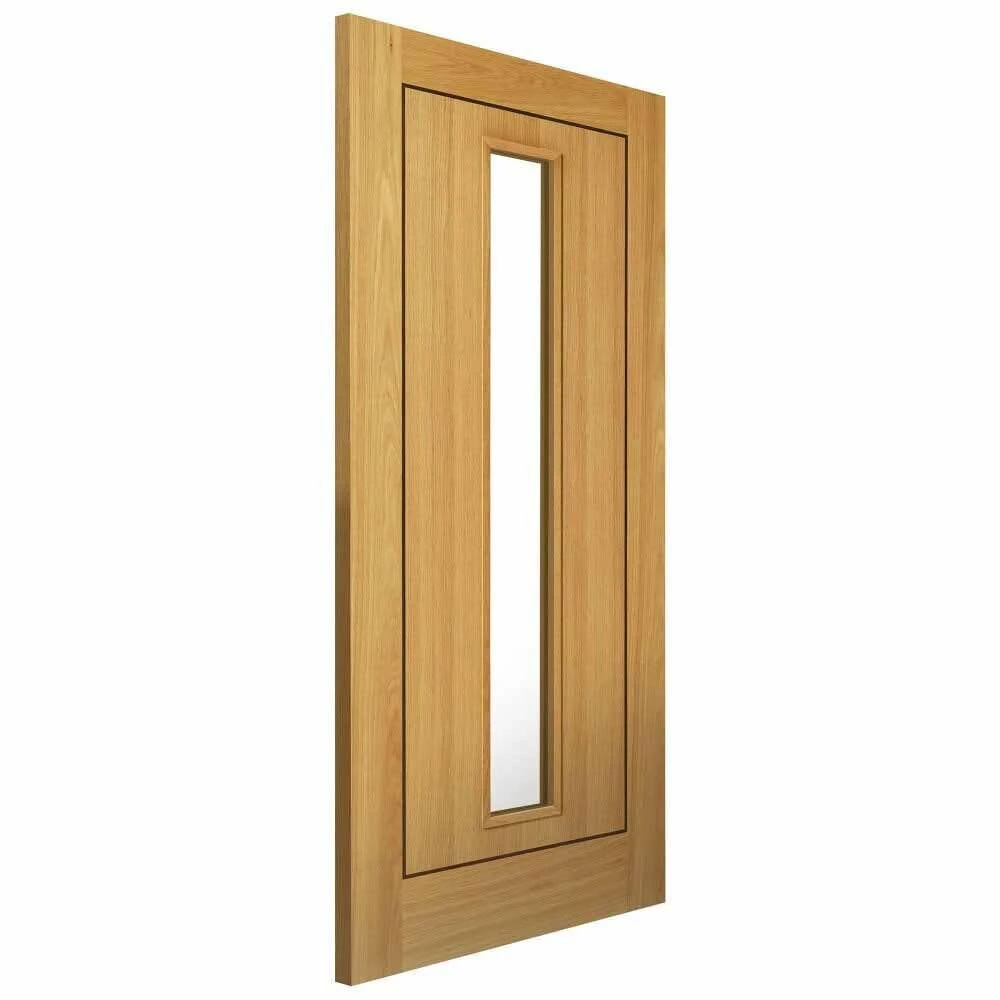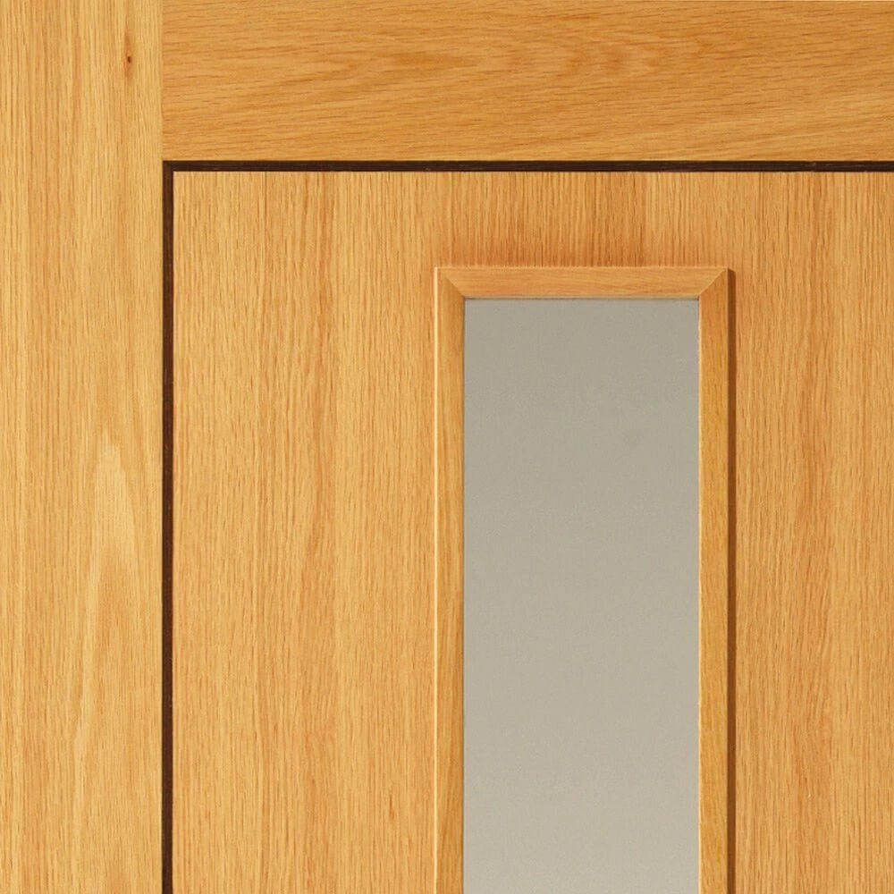 Our 1981 x 686 x 35mm Oak Spencer Glazed Door is fully finished making it ready to be hung. This particular design features 1 panel, 1 glazed pane of 4mm single glazed clear glass an walnut inlay inlay raised mouldings and an approximate weight of 24-28kg. Constructed with a semi-solid core and oak, this door has Raised allowing trimming of up to 6mm from each long edge.