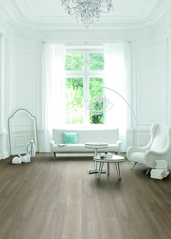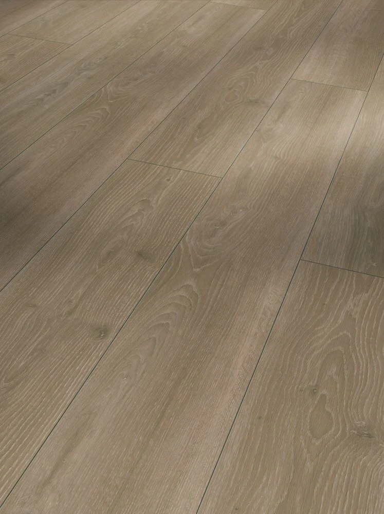 Available in the traditional herringbone look in the format 858 x 143 x 8 mm, this refined laminate flooring captivates with its sophisticated oak decor.
