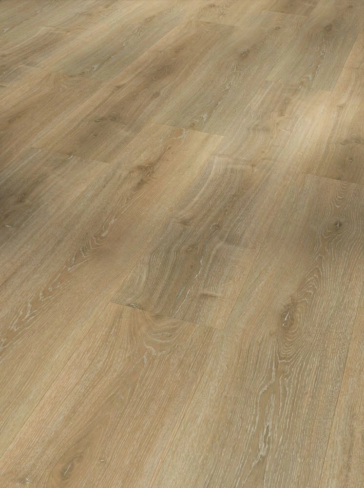 The brushed texture intensifies the pleasantly natural feel. The flooring in the wide plank format (1209 x 225 x 5.3 mm) is bevelled all around and ensures an authentic overall impression.