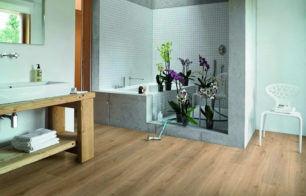 A rigid and waterproof SPC core means the boards are stable and level out slight bumps.