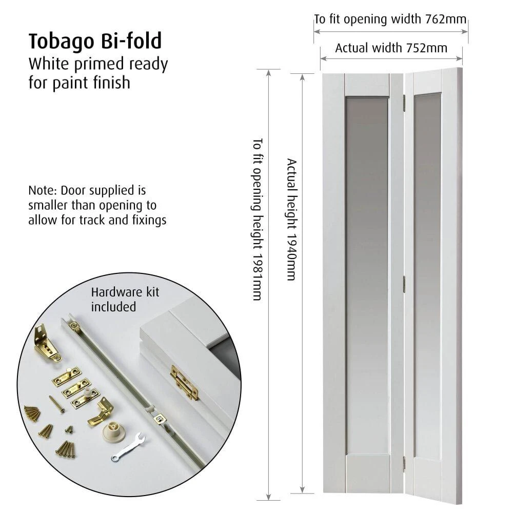Please note that the door opening size is listed and that the actual bi-fold door supplied is slightly smaller to accommodate tracking.